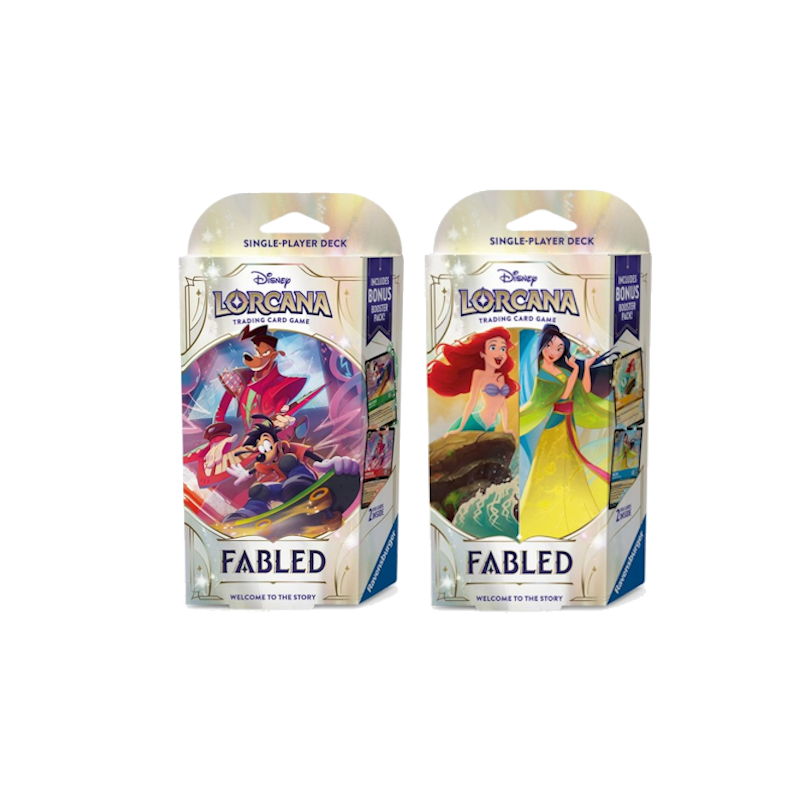 Om de Disney Lorcana TCG te spelen, heeft elke speler een kaartspel van 60 kaarten nodig. Kant-en-klare starterdecks bevatten een vooraf samengesteld deck met een specifieke kaartlijst. Als ruilkaartspellen nieuw voor je zijn, of als je het spel wilt ervaren met een kaartspel dat is ontworpen en getest door Team Lorcana, dan is dit een goed beginpunt.