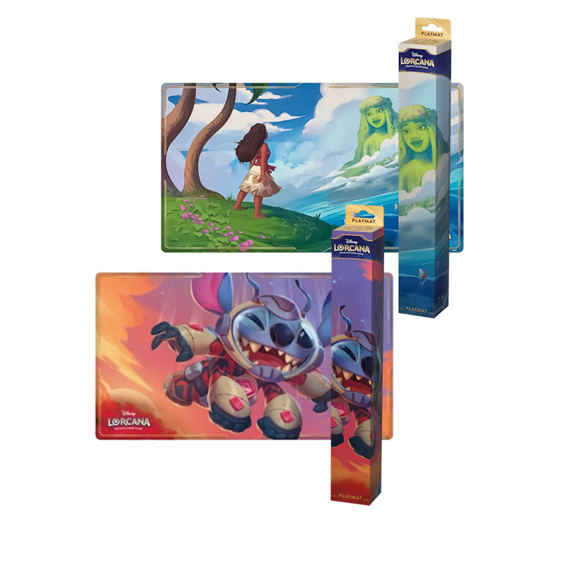 Elke speelmat heeft opvallende kunstwerken van Disney-personages. Een stoffen bovenkant voorkomt beschadigingen tijdens het gamen en kan ook gebruikt worden als bureaumat of muismat, terwijl de antislip onderkant de mat op zijn plaats houdt tijdens gebruik. Deze Disney Lorcana-speelmatten zullen Moana & Te Fiti en Stitch bevatten.