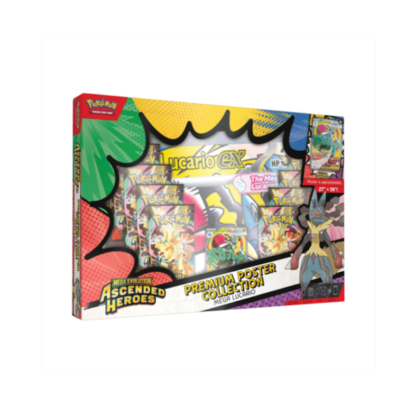 De ME2.5 Ascended Heroes Premium Poster Collection M Lucario is een must-have voor fans van Mega Evolutions en iconische Pokémon. Deze premium collectie zet Mega Lucario centraal en combineert speelwaarde met een sterke visuele presentatie.