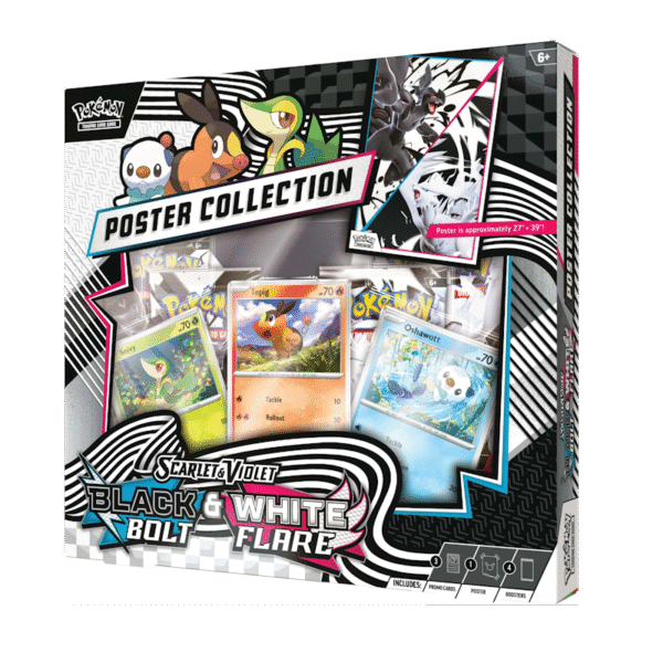 Deze uitbreiding is één helft van een groter geheel, dat alle 156 Pokémon uit Unova opnieuw in de schijnwerpers zet. Wil je je collectie compleet maken? Vergeet dan niet ook de Scarlet & Violet—White Flare uitbreiding te ontdekken!